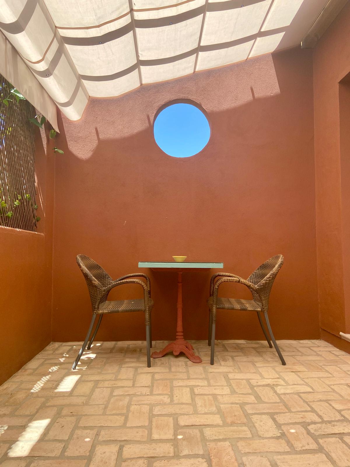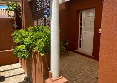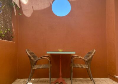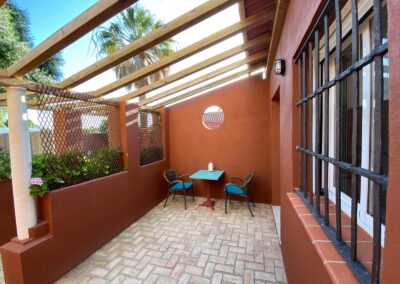 Coqueta habitación con capacidad para dos personas. Entrada independiente desde la zona común de aparcamientos y amplio porche con mesa y sillas.